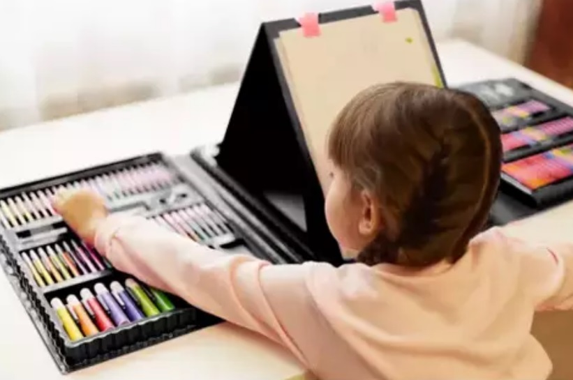Trusa pictura si desen pentru copii, 208 piese, cu suport pentru foi.
